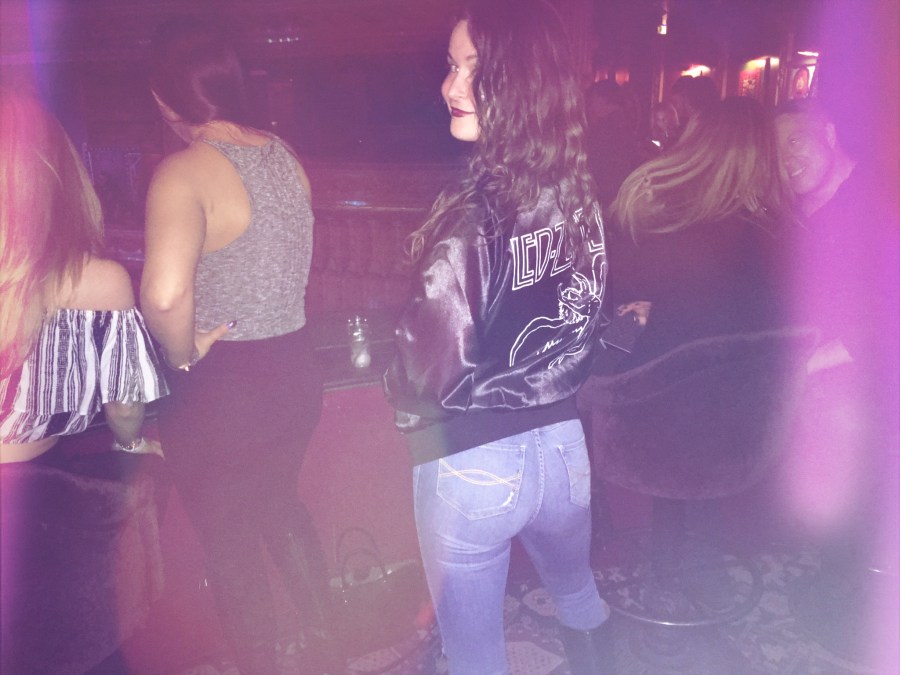 Walking into this private viewing balcony felt like I was walking into a surprise birthday party… planned for ME. Every single person in there had open arms (filled with drinks) and charisma that tackled me from the moment I entered. I immediately felt at home! We had waitress service, which of course was a plus, considering we weren’t fighting for any bartender’s attention and we certainly weren’t getting beer spilled on us by the creepy dudes (or should I now say peasants) downstairs! I asked the girl who brought me upstairs (I’ve forgotten your name too, shame on me) if I could throw on her satin black Zeppelin jacket and pose for a few photos to send to my friends…. my mom (dad too) and of course, to document the UNBELIEVABLE night I was having with a ton of strangers who were rocking my world upside down. I almost forgot the band was playing I was having so much fun… Just kidding. It’s literally impossible to forget that Led Zeppelin is playing with the piercing sound of Jimmy Page in the background and a clone of Robert Plant serenading your whole body like a greek god strumming a ukulele to a recently divorcee. Not sure if that made any sense but you catch my drift.